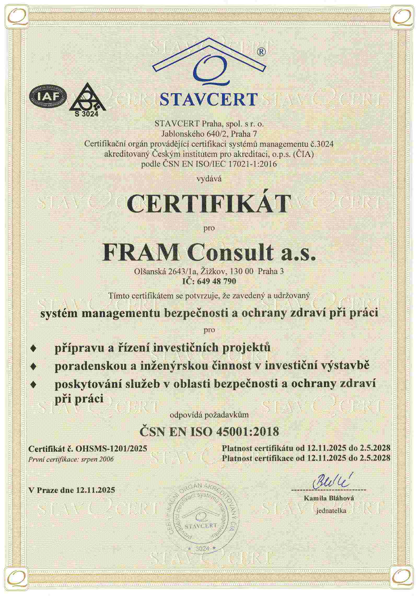 FRAM Consult a.s. / Olšanská 2643/1a / 130 00 PRAHA 3